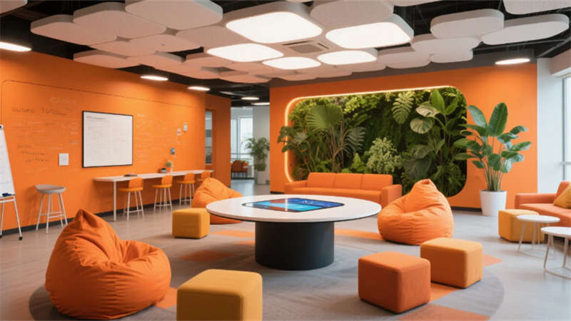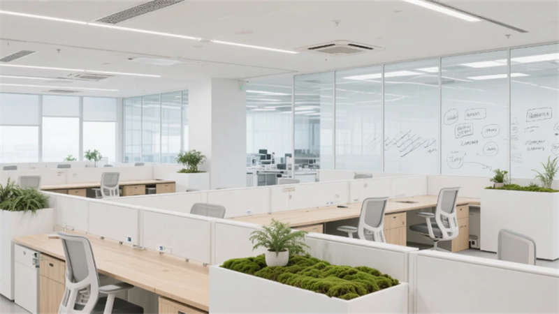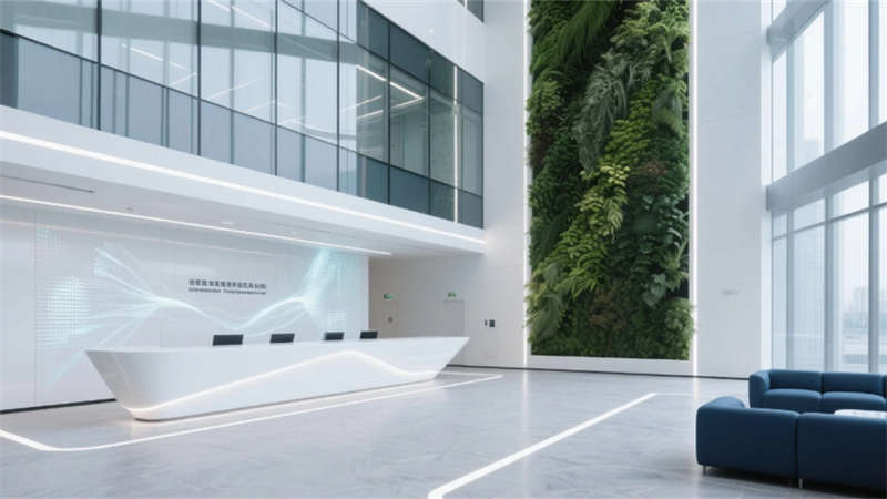 步入其中,纯净的白色与浅灰基调构筑出开阔明亮的基底,大面积玻璃幕墙邀请阳光自由流淌。室内,垂直绿墙与葱郁盆栽如音符般跳跃,为严谨的研发环境注入蓬勃生机??虐旃康餍饔肓榛?,可书写的玻璃墙面激发无限创意;高度自动化的核心生产车间则如同精密的乐章,洁净无尘的环境、流线型的自动化设备与身着无尘服的工程师,共同演绎着尖端制造的严谨与高效。从充满科技艺术感的展示厅、活力四射的创意协作区,到静谧专注的工作舱、温馨舒适的休憩社交中心,再到专业大气的会议空间,每一处功能区域都浸润着统一的未来主义美学——简约的线条、智能的光影、环保的材质与克制的企业色点缀。