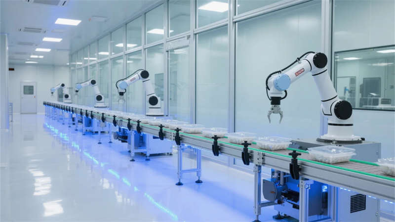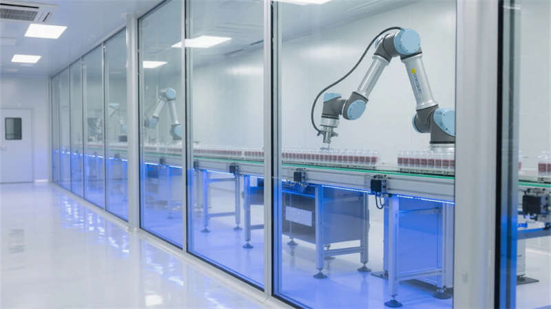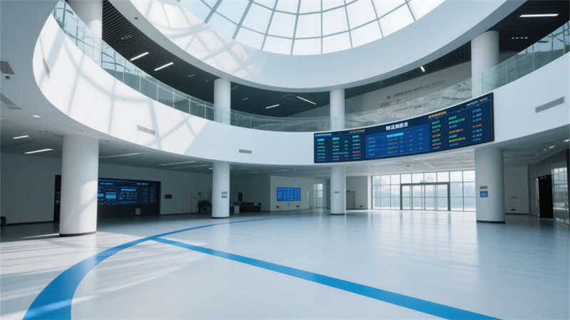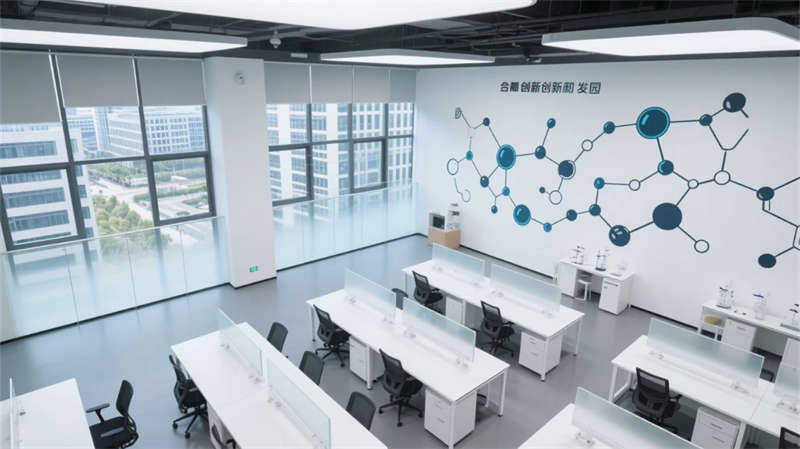 物流中庭的挑空设计打破厂房尺度压迫感,悬挂式数据看板如抽象艺术品,与玻璃穹顶投下的天光共构科技禅意。研发区可移动实验装置墙体现柔性生产理念,分子结构艺术墙绘暗喻制造背后的科学探索。