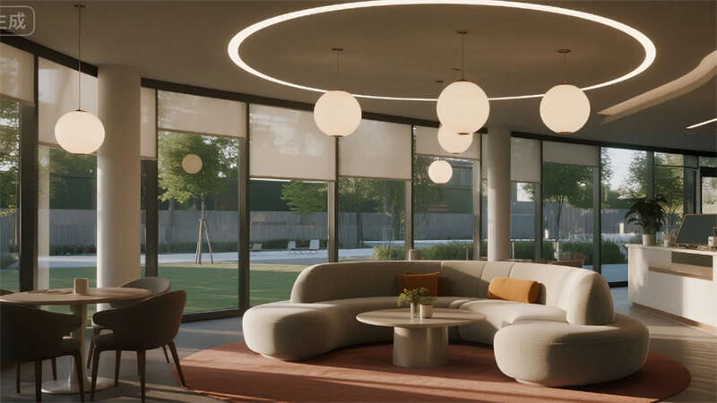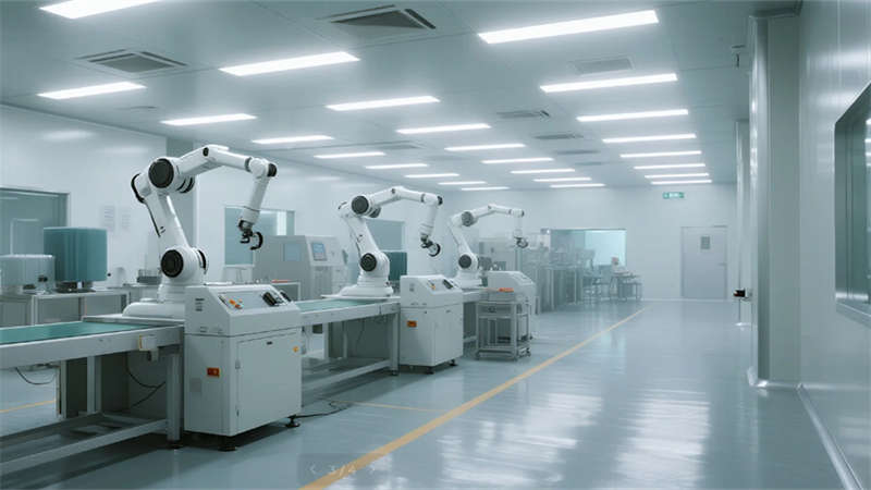 生产空间聚焦高效与洁净,智能机械臂单元与??榛芟呦低陈憔懿牧现圃煨枨?,冷色调照明强化科技严谨感。研发区域突破传统厂房格局,落地窗引入自然光与园区景观,垂直绿墙净化空气的同时激发创造力。