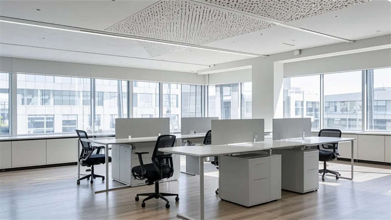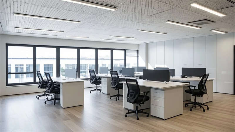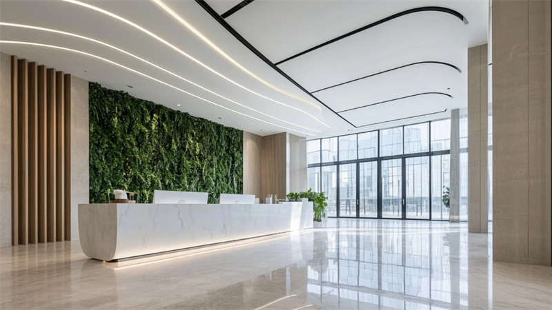 功能布局强调流畅性:开放式办公区借全景落地窗引入室外绿意,提升工作舒适度;智能车间通过规整的管线排布与环氧地坪,传递高效与秩序;员工休闲区与生态中庭形成呼吸节点,绿植与艺术装置柔化工业环境的刚性。设计注重光线的戏剧性表达,线性灯光与天窗协作,在走廊、会议室等区域投落细腻光斑,强化空间纵深感。