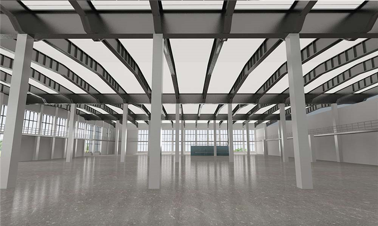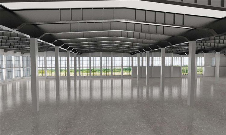 该厂房对地面承重的要求比较高,同时对厂房整体的的美观也有所要求,在该案例的地面建造上使用混凝土做为地面地基,在地基的基础上覆盖一层环氧地坪,保证了美观同时也起到防尘防静电的作用。顶部为钢结构框架,消防、通风、及中央空调都在该案例中有所运用,在保证实用的基础上不失大方和简约的风格。