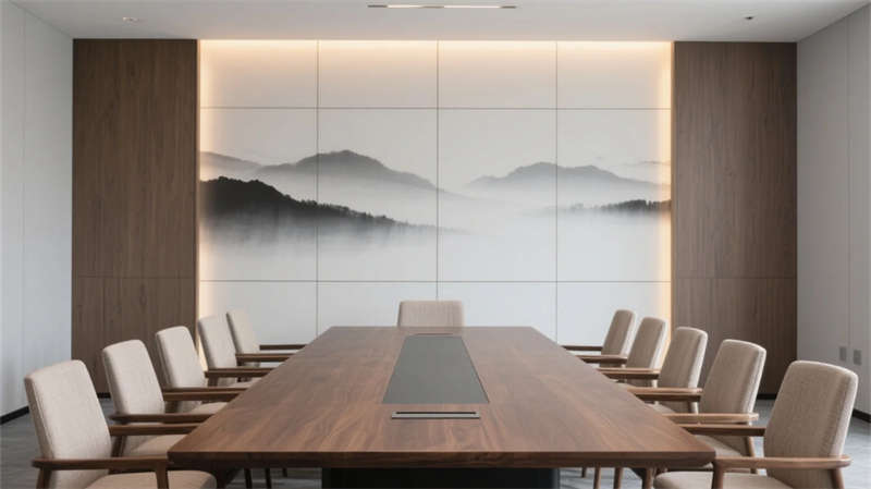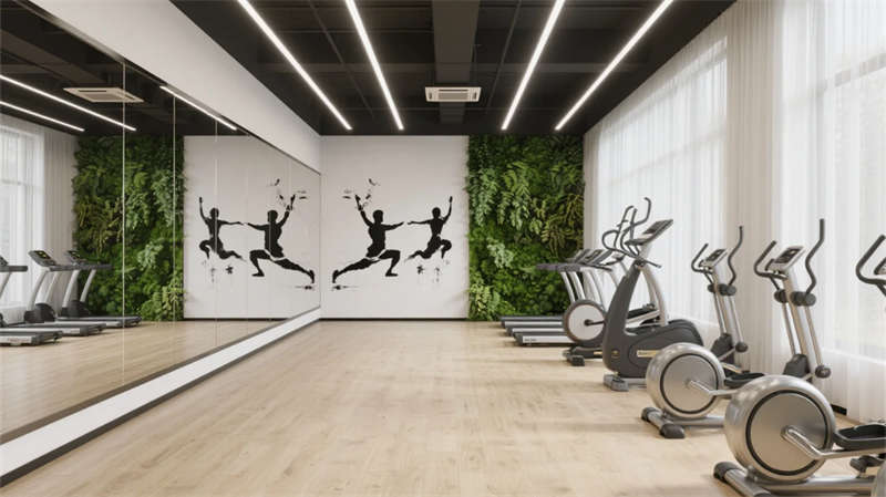 健身区与会议室平衡功能与美学,金属器械融入水墨肌理,会议长桌呼应胡桃木的温润质感。整体设计弱化边界,让光、影、材质在流动中对话,为合肥注入一处隐于城市的东方精神绿洲。