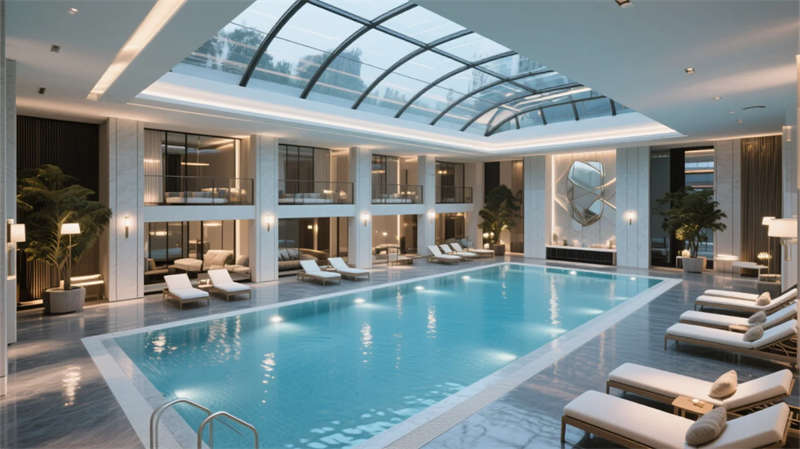 这座酒店设计以轻奢风格为核心,将优雅与舒适完美融合,打造一处都市中的宁静绿洲。大堂区以高挑空间和水晶吊灯开场,大理石地板的流畅线条延伸至每个角落,营造出温馨迎宾的初印象??头壳有蛟济姥?,落地窗引入自然光,木质墙面与艺术细节相得益彰,为旅客提供私密休憩港湾。餐厅区以开放式布局为亮点,吊灯与绿植交织,营造轻松用餐氛围;会议区则通过专业家具和柔和色调,平衡商务与休闲需求。健身区活力四射,镜面墙反射光线,空间通透;SPA区以宁静为主导,水池和按摩区带来身心放松体验。泳池区成为奢华焦点,玻璃顶棚下光影舞动,躺椅区尽享惬意时光;酒吧区以时尚元素收尾,金属吧台与灯光呼应,为夜晚注入社交活力。整体设计注重材质与光线的和谐,每一功能区都独立而统一,彰显低调奢华。在合肥这一活力都市中,酒店将成为一处设计杰作,满足多元需求。