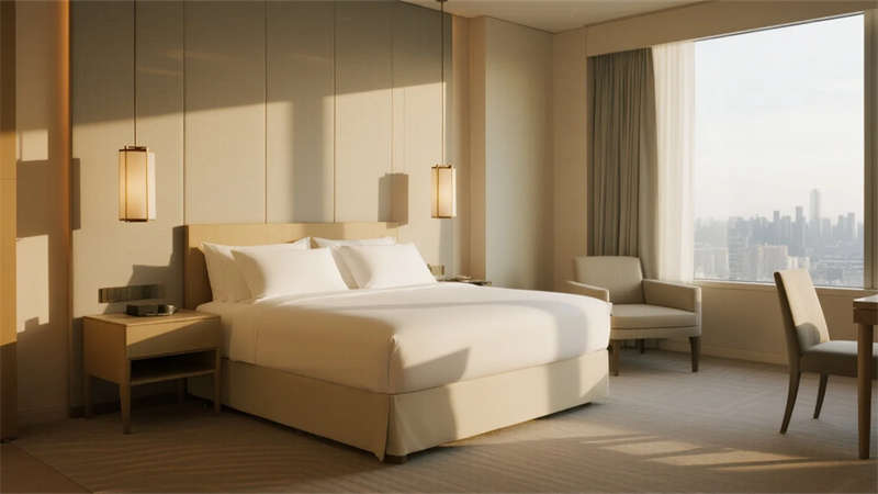 空间布局开阔通透,巨大的落地窗将自然光引入室内,与精心设计的隐藏式灯光系统共同营造出温暖而富有层次的光影氛围。从大堂的恢弘大气到客房的静谧温馨,每一处细节都旨在为旅客提供一种沉浸式的、回归本真的休憩体验。整体设计强调人与空间的情感连接,在简约中蕴含深度,于现代中流露温润,成就了一处城市中可呼吸、可感知的诗意栖居地。