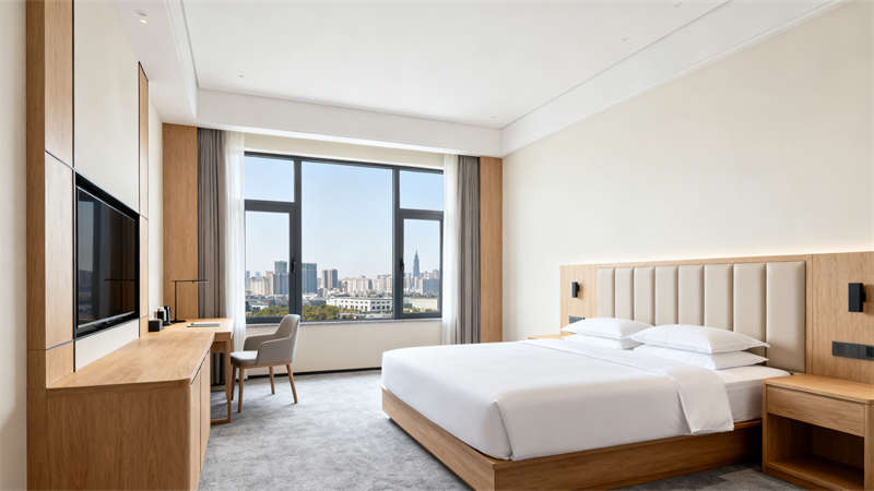 客房设计注重舒适与便捷,整体风格延续简约风,家具选择线条简洁的款式,软装搭配以柔和的色彩为主,营造出宁静放松的休憩环境,同时兼顾收纳功能,让客房空间整洁有序。?
