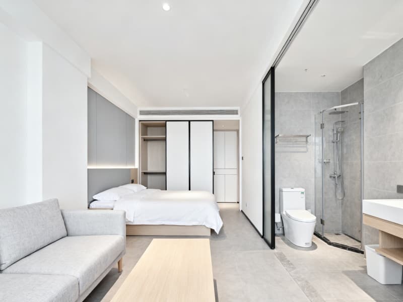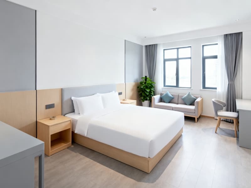 整体设计既符合现代酒店的简约审美趋势,又充分适配客人的居住需求,让2000平的酒店空间不仅具备完善的功能,更能成为客人短暂停留期间的舒适休憩场所,传递轻松、自在的居住氛围。