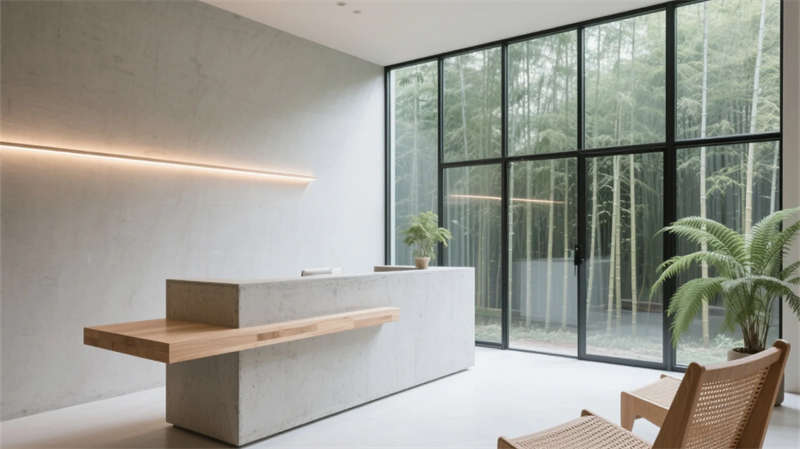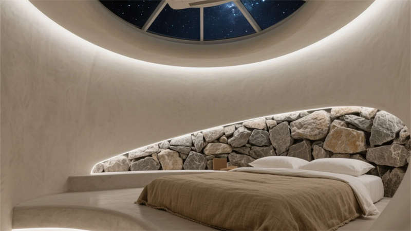 功能布局巧妙衔接室内外呼吸感:接待厅玻璃幕墙引竹林入画,禅茶室借枯山水凝神静气;餐厅与书吧以可移动家具实现场景转换,暗藏式光源在夜间描摹空间轮廓??头可杓魄康魉矫芰朴?,星空穹顶与混凝土浴缸形成原始与现代的诗意碰撞。