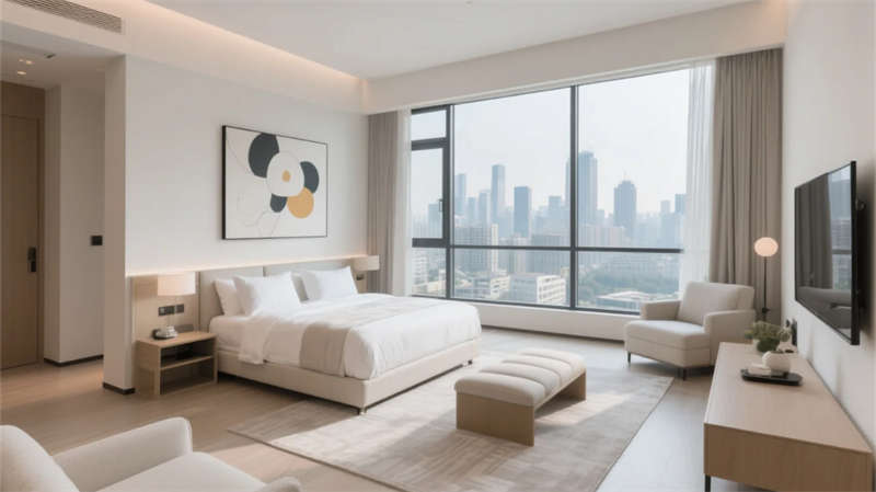 这个民宿项目坐落于合肥,设计灵感源自现代简约理念,强调空间的纯净与自然融合。整体风格以中性色调为主,运用浅木和石材元素,搭配大面积落地窗,让自然光自由流淌,营造出宁静而通透的氛围。八个功能区相互衔接:接待大厅以木质柜台和舒适等候区迎接宾客;客房注重隐私与舒适,简约家具提升休憩体验;餐厅和公共休息室鼓励社交互动,绿植点缀增添生机;室外露台和泳池区连接城市景观,提供休闲放松空间;活动室灵活多变,支持多元用途。每个区域都避免繁杂装饰,细节处体现精致工艺,如柔和灯光和天然材质,让客人在简约中感受温暖。项目致力于打造一个逃离喧嚣的避风港,融入合肥的自然环境,光影交织间,传递出静谧而优雅的生活美学,为旅途增添诗意停留。