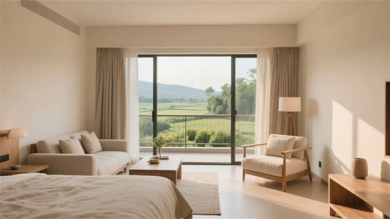 公共区域如大堂和餐厅,采用挑高与开放布局,光线成为空间的主角??头可杓迫シ本图颍⒅厥媸市杂胧右?,每间房都能感受到不同的自然片段。屋顶露台是项目的亮点,成为客人放空或社交的绝佳场所。整体设计不刻意追求装饰,而是通过材质、光影与自然对话,为都市人提供一处回归宁静的栖息地。