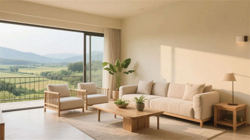 这座乡村民宿以现代简约风格为核心,将自然与建筑融为一体。设计强调线条的干净利落和材质的原生质感,白色墙面与木质结构形成对比,大面积的玻璃引入田野与天空的景致,让室内外界限模糊。庭院保留原生植被,通过碎石与木平台的组合,营造出轻松的氛围。