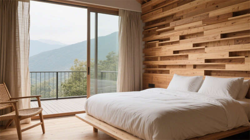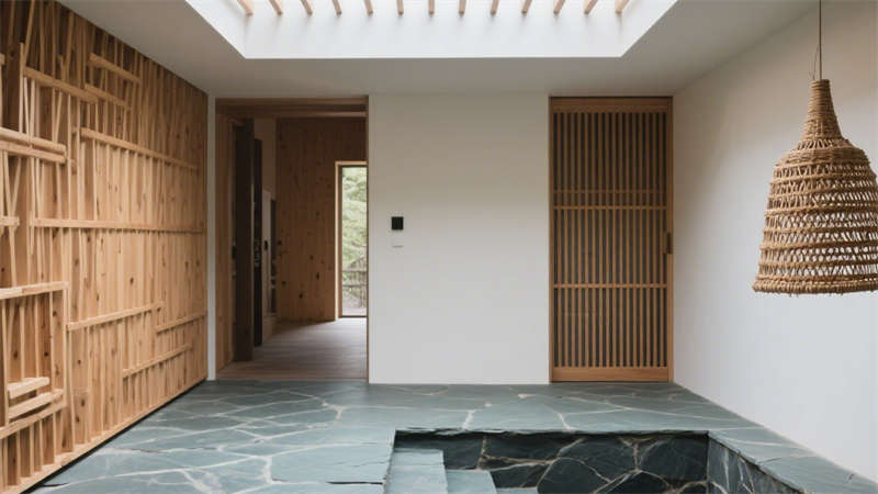 私密客房延续整体风格,床具与家具均选用简约线条的原木款式,搭配浅灰色床品与局部的自然织物,营造出松弛的休憩环境。细节处,墙面装饰以天然石材切片与手工陶艺,地面铺设防滑耐磨的原木纹地板,既保证实用功能,又强化了自然质感。整个设计没有多余的繁复装饰,而是通过材质的碰撞、光影的变化与色彩的协调,让每一处空间都传递出 “归于本真” 的居住理念,为入住者提供远离喧嚣、亲近自然的休憩体验。