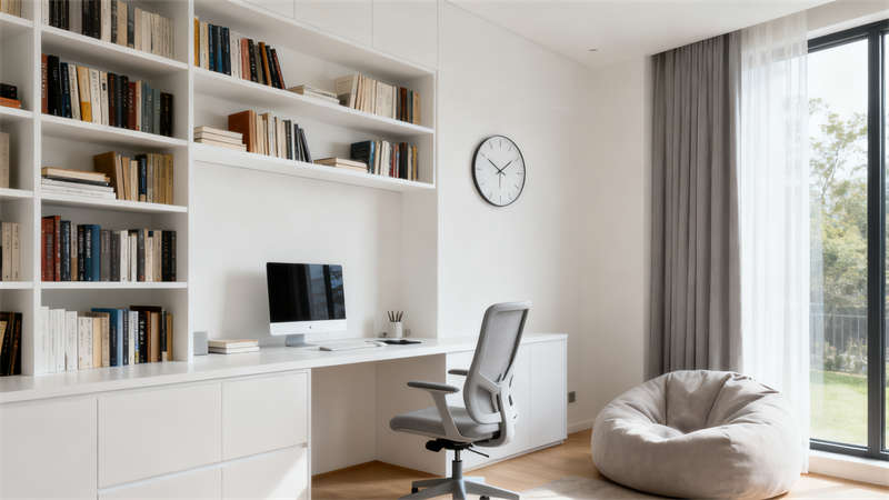 室内空间延续整体风格,客厅注重通透感,大面积采光让空间更显开阔,简约款式的家具搭配棉麻质感的软装,营造出温馨放松的休憩氛围;餐厅将实用性与美学结合,简约餐桌椅搭配暖光吊灯,让用餐时光更具仪式感;卧室以柔和色调为主,舒适床品与隐藏式收纳设计,既保证了居住的舒适度,又维持了空间的整洁简约;厨房采用简洁的橱柜设计,合理规划动线,让操作更便捷;卫生间注重干湿分离,选用耐磨易清洁的材质,搭配简约卫浴洁具,保持空间清爽;书房/休闲区则以简约书架与舒适座椅为主,营造出安静专注的阅读或工作环境,整体设计处处体现现代简约的核心,为住客带来惬意的居住体验。