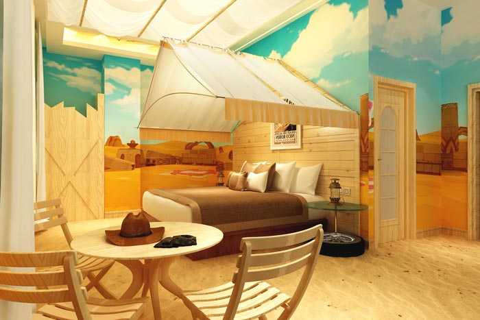 本次为特色主题酒店装修设计项目,设计师在与客户的交流中,了解到客户希望营造一个不一样的空间格局,因为在客户看来现在国内的酒店大部分都是中规中矩的,所以客户希望走一条别具一格的路线,为客户带来不一样的体验与氛围,让客户每一次到来都是满怀期待。