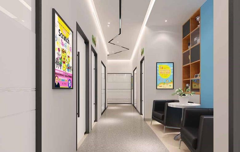 在保证有足够的教学空间的同时,设计需要能承担小型展览,讲座,及洽谈等候等空间功能。最大化的利用空间,确保每个教室都能有充足的自然光线,并将机构形象色——绿色巧妙的融合到空间设计中。公共空间的沉浸式设计,符合整个机构的定位,增强了人与空间的互动,形成更紧密的心理联系。