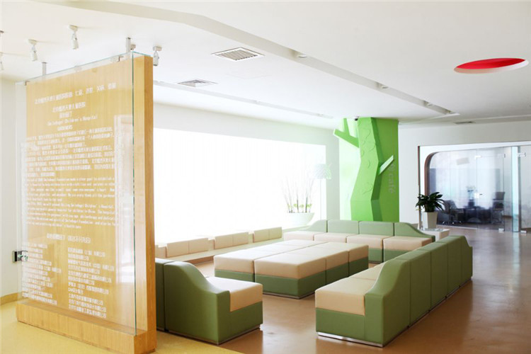 2.多层次的游乐空间,这两点被充分的应用,在过往的医院几乎是未有过的.目的是利用鲜艳的色彩和流动的空间对人产生心理的影响,让儿童减少因为环境的变化和疾病本身带来的焦虑,而在此就医过程中感到全方位的舒适与轻松.空间内的定制家具,在以趣味性和游戏感为主题设计的同时,细节上也全部应用圆角和软性材质而避免对儿童造成伤害.