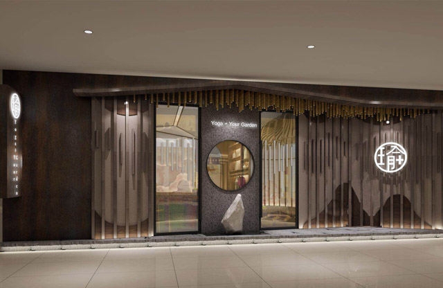 整体是中式风格,遵循自然,简约时尚,彰显出欢乐、舒适的氛围。大量木质材料,柔和的木色背景,搭配瑜伽装饰品及婵院品牌文化,您喜欢吗?