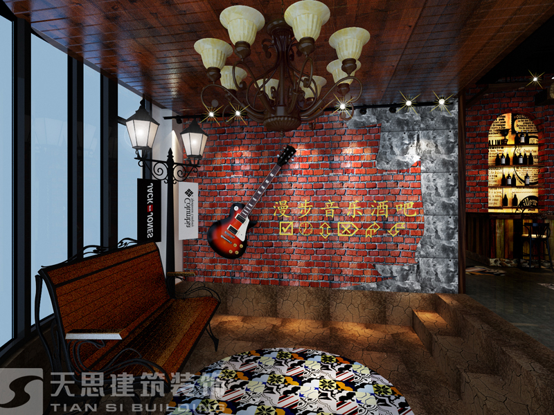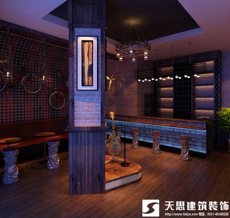 设计公司: 安徽天思建筑装饰设计工程有限公司 项目面积:180平方 个性的风格是酒吧设计的灵魂,就像人类的思想。酒吧文化从某中意义上来讲是整个城市中产阶级的文化聚集场所,