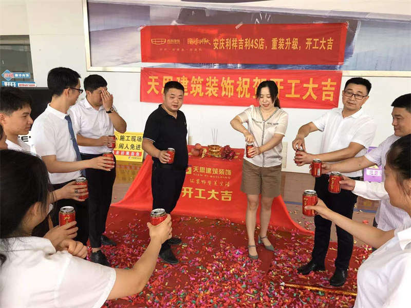 2022年7月13日,由天思装饰承接的安庆利祥吉利4S店装修开工啦!这是安徽天思装饰本月第5个开工项目,也是本司承接的又一个4S店类办公项目的装修工程。在此,安徽天思装饰全体员工恭祝安庆利祥吉利4S店装修工程开工大吉!