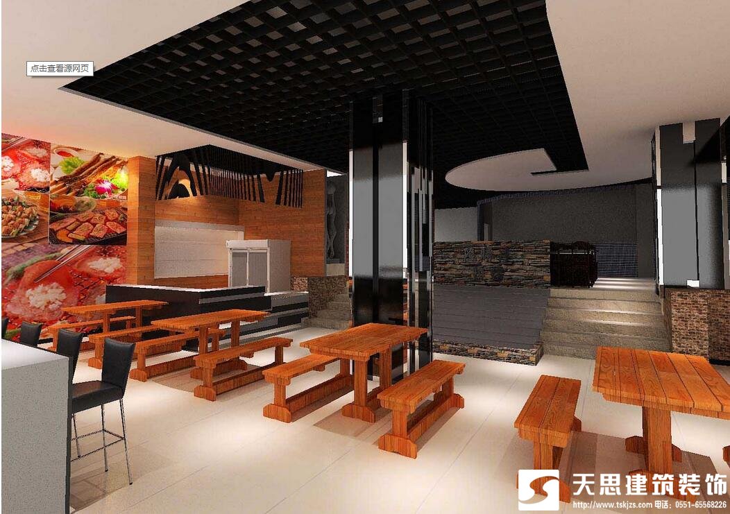 1、烧烤店装潢设计桌椅的配置:桌椅的选择简单就好,但是椅子再怎么简单都必须要有靠背,这个非常的有必要,要不客人会很累,而且稍微不稳当就会发生仰面朝天 的事情,最主要的还是一个舒适度。桌子选择一些木质的,感觉看起来比较厚重的款式,桌面上铺上厚玻璃最好,这样在打扫时会方便很多而且看起来桌面透亮,美 观不少,不然时间长了任何桌子表面都会出现褪色的情况。