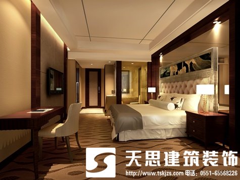 墙面的色彩对空间有重要的影响。明度高的墙面可以使空间显得开敞、明亮,小空间中若选用明度低的暗色调则会给人以压抑和沉闷的感觉。而高纯度与高明度的空间不仅开敞明亮,而且气氛热烈、奔放。在考虑色彩的同时还要注意墙面的质感,因为表面越光滑,反射出来的光线也就会越多。对于一些酒店设计空间体量不大且开间小的室内空间,墙面应尽量选用明度高的浅色调;而面积较大的室内空间则可以使用木材和深色壁纸,以减少空间的空旷感,使空间产生一种舒适安逸、亲密的气氛。