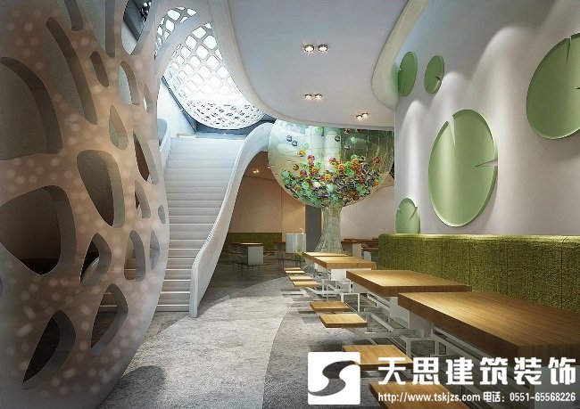 另外,在外墙材料的质感相对粗些无妨。一般在中式餐厅设计中多数是在近距离内观察,甚至可能与人的身体直接接触,通常采用较为细腻质感的材料。较大的餐饮空间如公共设施的餐厅大堂、宴会厅等的内墙适当采用较大线条及质感粗细变化的材料有好的设计效果。
