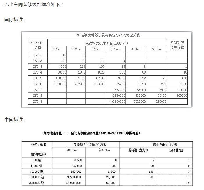 无尘车间装修标准分为国际标准和中国标准,其它各个国家都有自己的单独国标,这在装修的时候需要明确,使用哪个标准。