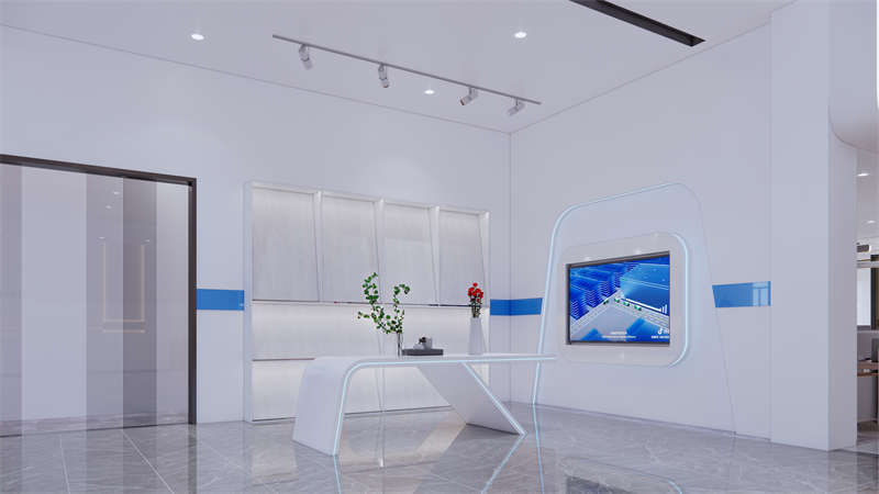 4、办公室设计主要以现代科技风为主。设计师根据客户空间需求及展厅空间特点,以产品和洽谈相结合的特点,打造办公和展厅一体化的办公空间。在满足功能性的同时兼具艺术性,就采用时尚大白的为主要色系,灰色为辅。简洁大方,韵味十足,与品牌定位相融合。打造多个办公区、产品展厅、公司文化墙等深深地融合在办公空间中,形成现代国际化办公空间氛围。
