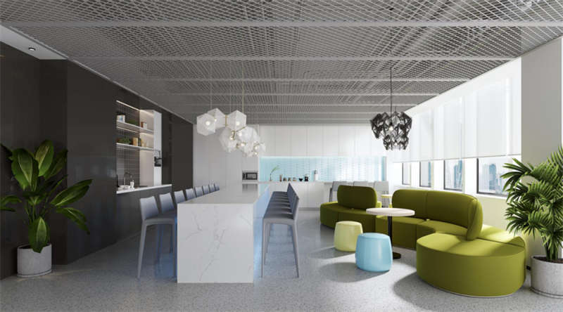 一般用在过道多用,但也有被采用于开放式办公室吊顶和员工活动区域。这种材料通常是用铝合金制造,饰面多为喷涂或烤漆,色彩品种较多,选择境地很大,网格的大小可根据需求定做。