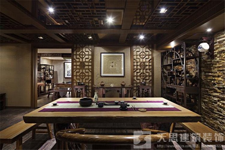 中国的茶文化应有尽有,点一杯清淡的香味的茶,与茶友谈天论地,只求一份真实和简单,所以,通常茶馆设计说明预设相对简单,轻装修而不重扮饰。茶室设计在空间组合和分隔上都