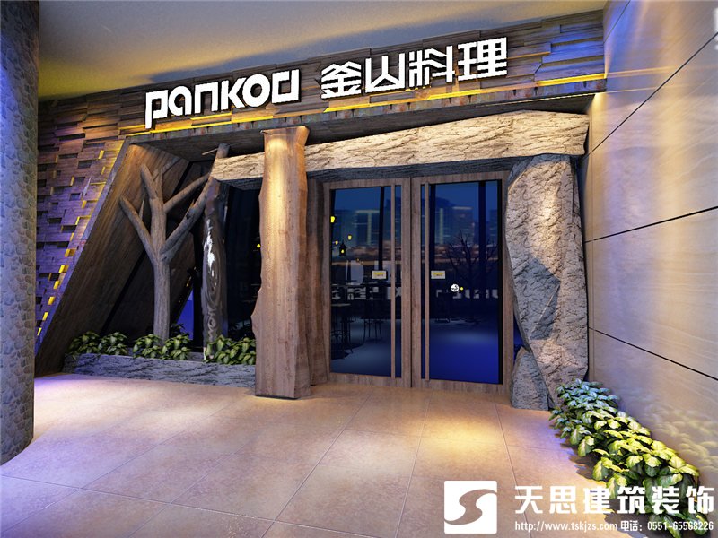 餐厅设计从自然界中提炼元素并进行分解和重组,运用此案带的语言来表现,将传统和现代融合在同一空间内,创造出一个温暖而不失私密、神秘的空间。“质朴、自然”,方案中运用原木、石、藤蔓和混凝土等生态材料,以及丝绸、染织布料、光滑的黑色皮革等现代材料,为客人用餐其中感受自然的气息,也保留了现代设计感。