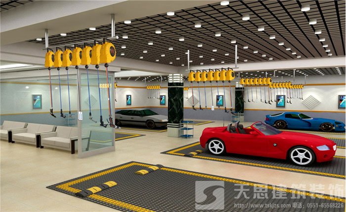 洗车区是汽修美容店的主要设施,我相信这个去过汽车美容店的都知道吧,汽车美容工作的第一步就是在这个地方完成的。由于汽车产生的污水比较的多,为了保持场所的干净整洁,应该在洗车区设置排水通道,将洗车产生的污水排到污水处理器中,当然通过装修解决了排水问题,但是同时还应该经常的冲洗和清扫。我们天思装饰装修公司总结了一下汽车美容店装修的经验,洗车区的结构大致一般有单道式和通道式两种,这里就不详细介绍这两种结构了。在这里我推荐一种结构,那就是通道式结构,因为这种装修结构能够省去倒车的繁琐,而且还能节省工作区域,以此提高工作的效率。