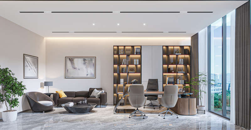 办公室装修的首要原则是功能性与美观性的完美结合。在规划空间布局时,要充分考虑员工的工作需求,如合理的工位安排、便捷的通道设置以及充足的储物空间等。同时,通过巧妙的色彩搭配、材质选择和灯光设计,营造出既舒适又富有美感的办公环境。这样既能提升员工的工作效率,又能增强企业的整体形象。