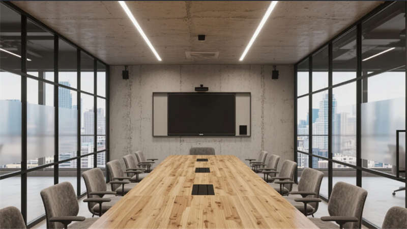 该办公空间以暖调轻工业风为灵魂,将冷峻的金属骨架与温润的竹木元素交织,在微水泥的灰调基底上铺陈出理性与感性的平衡??虐旃杪涞卮耙馊胧遥讨睬接牍斓赖拼鹆鞫男鞒【?;独立专注舱与水吧区形成动静分区,满足深度思考与即时社交的双重需求。