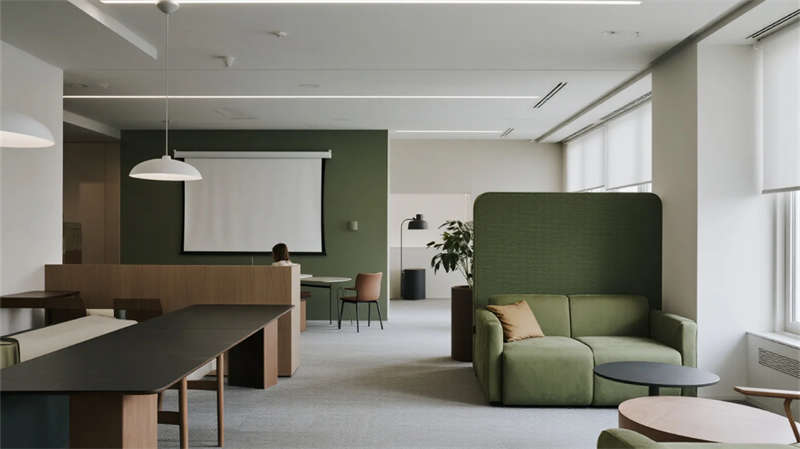 设计中注重舒适与可持续性,大量运用自然光和绿植,不仅提升空间活力,还呼应了生态友好的理念。智能照明系统根据不同时段调节亮度,强化了现代感。整体空间布局灵活,避免了僵化分区,使办公体验更具人性化。该方案旨在为使用者提供一个激发创造力、促进协作的理想场所,每一处细节都体现了简约而不简单的美学追求,让日常工作充满活力与归属感。