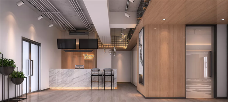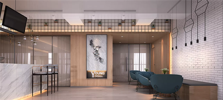 本次设计师在打造瑜伽馆内部特色时,以活力、时尚为主要设计理念,在瑜伽馆大厅,设计师选用天然砖石来打造背景墙,进行全面刷白,结合天然木材打造的墙面和实木地板,再取黑色装饰品进行点缀,使整个大厅都充满的时尚感,而在瑜伽室,设计师则以开阔和简洁为主,以灰色为主要色系,搭配着实木地板,不添加任何的家具,使整个空间开阔的同时,将瑜伽馆的活力感尽数展现出来!