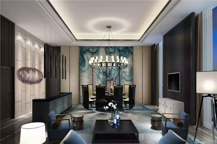 设计理念:在设计上模仿了自然界的曲线,让人彻底逃离充斥着刻板而冷漠的直线的喧嚣城市。不同的颜色、线条和笔触把居室的不同空间描募出了冷暖季节的别样感触,仿丝和粗麻更是体现了喜好自然舒适的朴素情调。