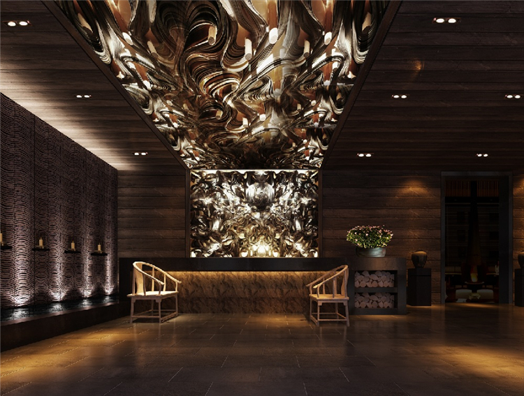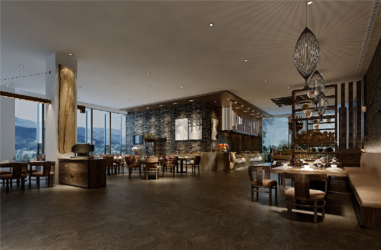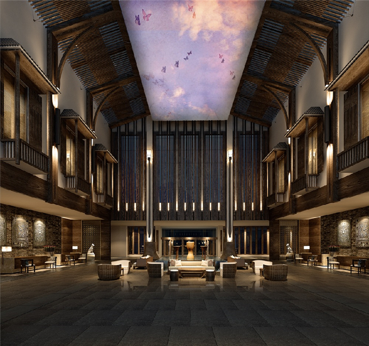 投资方希望打造一个具有民族特色又同时具备国际化背景的星级度假类型的酒店设计。对传统文化的有机传承和再创造是设计师始终思考的命题。以山、水、鼓、火、图腾犬五大元素为主线贯穿于室内设计中。