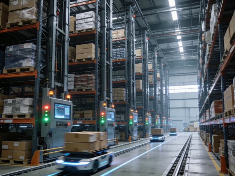 仓储区运用自动化的立体货架,通过物联网系统实现精准库存管理。智能运输小车在划定的轨道上穿梭,高效完成货物搬运。