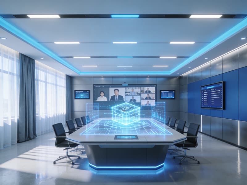会议室配备全息投影设备,满足远程会议与虚拟展示需求。智能化的灯光与窗帘系统可根据会议场景自动调节。