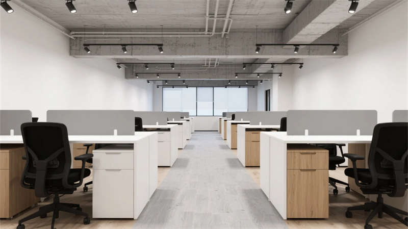步入空间,现代简约工业风以原始肌理与智能元素碰撞出独特韵律。浅灰水泥与原木的基调贯穿始终,裸露结构构件与暖光线性照明形成张力,绿植垂直装置在冷峻材质中注入自然呼吸感??攀桨旃?榛酪瘟榛钭楹?,落地窗引入天光,轨道射灯精准聚焦高效场景;独立办公室的磨砂玻璃隔断兼顾隐私与通透,深胡桃木桌面沉淀商务气质。