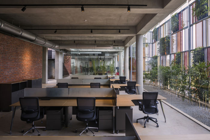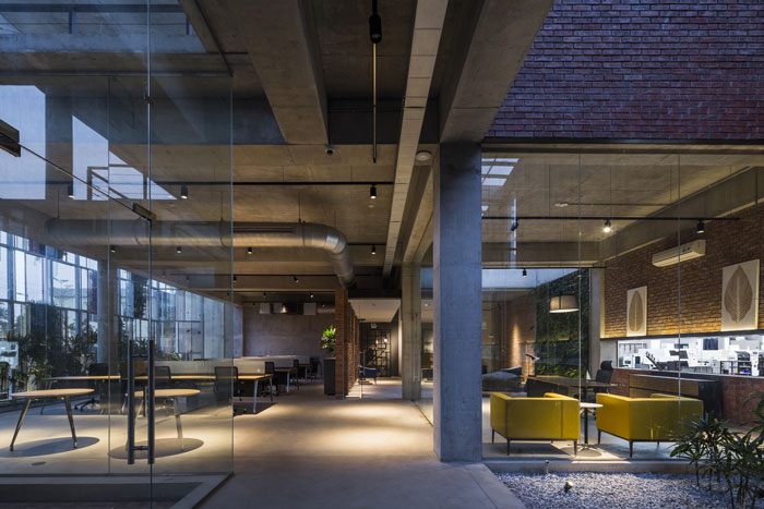 本次为工厂办公大楼办公室装修设计效果图,办公室设计面积4000平方,设计师在办公室设计中,以现场环境保持一致为前提,目的就是打造一个融合与厂房的办公楼,而不是一个独立的装饰。