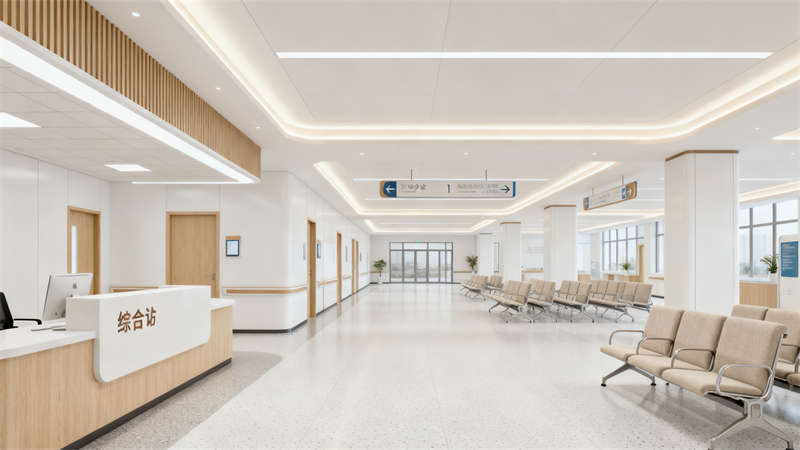 室内空间在保持风格统一的同时,兼顾不同区域的功能特性。门诊区域动线清晰,布局合理,避免患者往返奔波,墙面以柔和的色调为主,搭配简约的装饰元素,营造清爽有序的环境;候诊区融入自然元素,柔和的灯光、舒适的座椅与绿植点缀相得益彰,有效缓解患者等待时的烦躁情绪;病房空间注重私密性与舒适性,软装选择以温馨色调为主,家具摆放兼顾实用与便捷,让患者仿佛置身“家一般”的休憩环境,助力康复;诊疗室与护士站强调高效与便捷,合理的功能分区让医护工作更顺畅,同时通过亲切的设计细节拉近与患者的距离;康复区域与走廊设计延续温润风格,避免生硬的空间划分,通过连贯的视觉元素让整个医院空间形成有机整体,既方便患者活动,又让医护工作更高效,真正实现“以患者为中心”的设计初衷,让医疗空间不仅具备诊疗功能,更成为助力身心康复的疗愈场所。