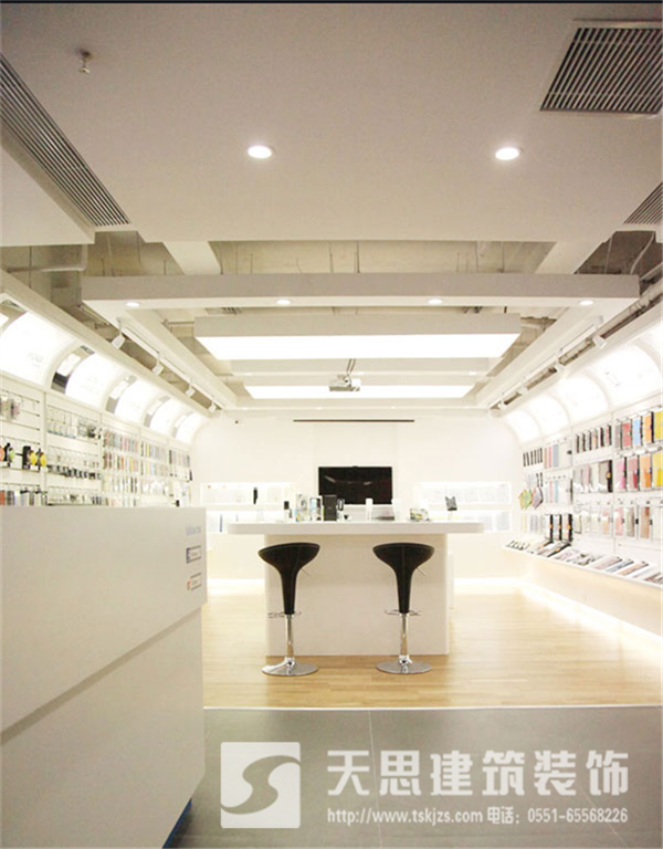 该展厅的照明设计中整体与重点相结,突出展品。照明部分采用暗藏的灯光设计,结合软膜灯箱在呈现柔和光线的同时,更突出了展示商品。光影的变化,造型的虚实对比为静止的空间增添拉活跃的元素。整体线条简单利落。简洁明快的现代设计元素人性化的功能细节,营造一个突出细节、时尚简约的展示氛围。
