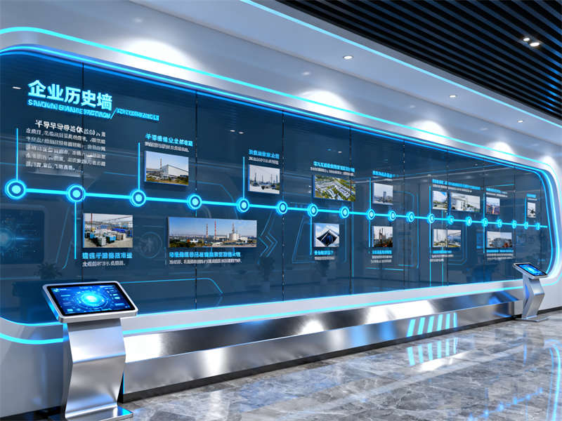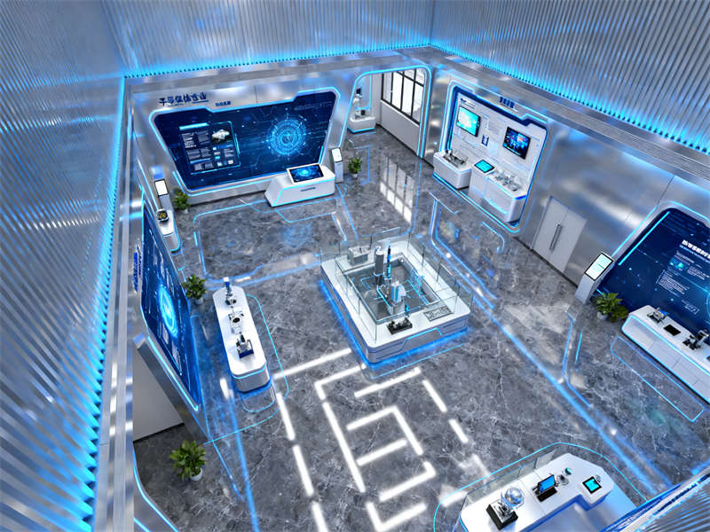 展厅入口处设置了沉浸式视觉装置,通过光影效果模拟半导体芯片的微观结构,让参观者刚进入就能直观感受到行业特性。往里走,核心展示区采用开放式布局,搭配通透的玻璃展柜与悬浮式展台,既方便参观者近距离观察展品,又能让空间显得开阔不压抑。展示区旁设置了互动体验区,装修上融入了柔和的木质元素,平衡科技感带来的冷峻,让参观者在互动过程中更显舒适。?