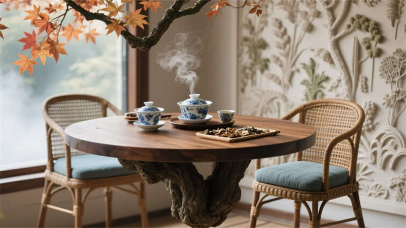 针灸室格栅隔断透出晨光竹影,经络图前银针泛着柔光;文化长廊地面流动篆书金句,引领视线穿透月洞门望向煎药铜锅升腾的薄雾。茶疗区古茶树畔,药汽氤氲于青花茶盏,百草浮雕墙下藤椅邀人小憩。