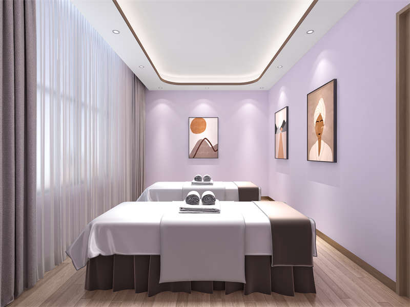 美容间,淡雅的色调与大面积留白,在视觉上体现出一种引导性和动感的体验,颇有动静怡然的空间气氛。